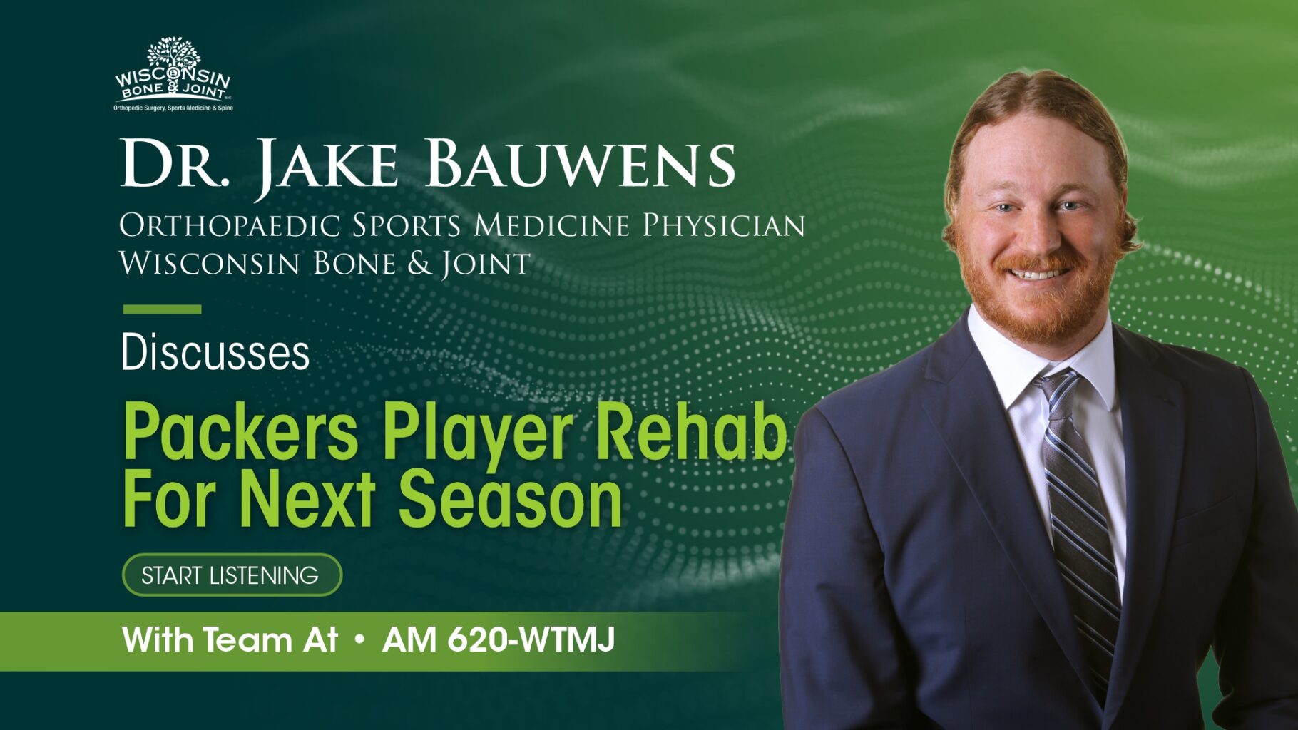 Dr. Jake Bauwens is an orthopaedic physician, specializing in sports medicine and sports-related injuries. Dr. Bauwens attended the University of Wisconsin-Madison to complete his Bachelors of Sciences in Biochemistry degree, and Rush University Medical College to complete his medical degree. Dr. Bauwens completed both his internship and residency programs in Orthopaedic Surgery at the Medical College of Wisconsin. Dr. Bauwens expanded his medical knowledge and expertise by completing an additional clinical fellowship in Sports Medicine at the University of South Florida and Florida Orthopaedic Institute.